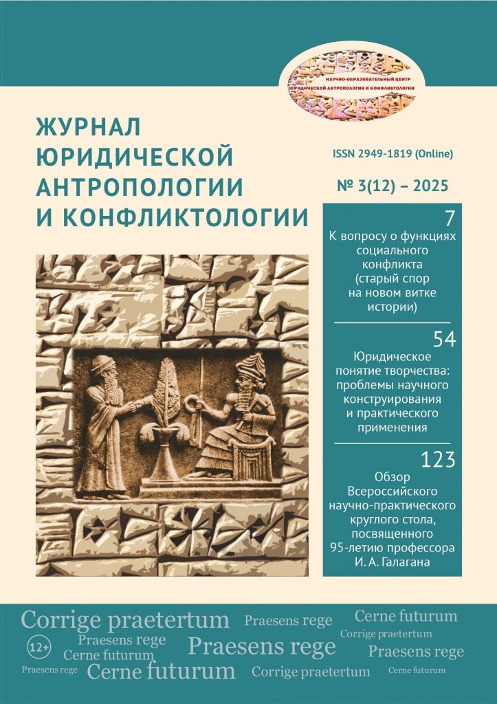 Редакция Журнала высоко ценит и поддерживает юридико–антропологические и конфликтологические исследования в области различных отраслевых юридических наук, а также междисциплинарные работы по изучению государственно–правовой реальности.