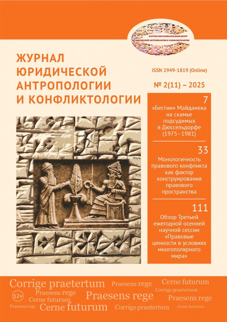 Приоритетными направлениями исследований для Журнала являются вопросы юридической антропологии и конфликтологии, теории, истории и философии права, сравнительного правоведения, методологии правовых исследований.